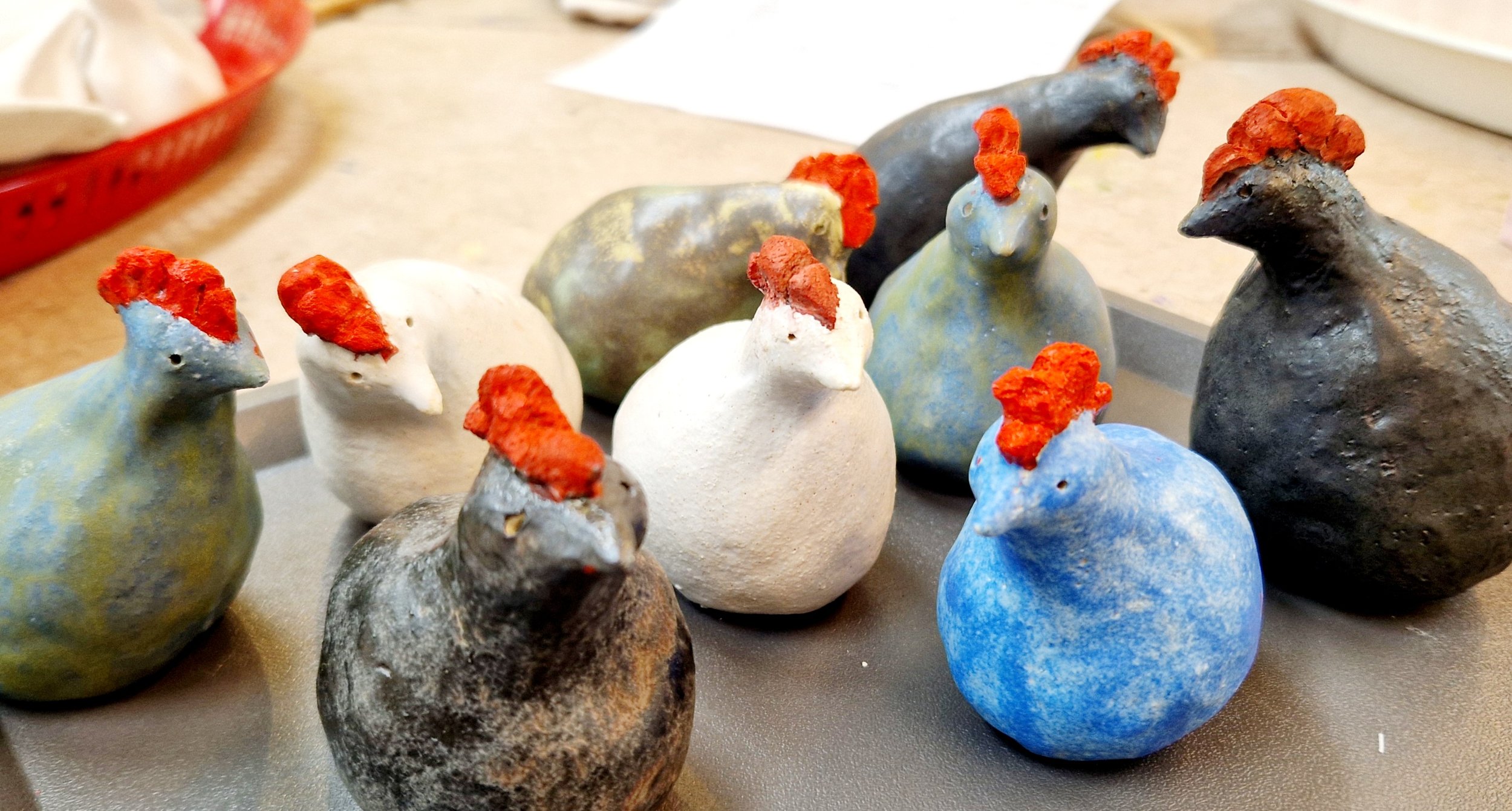 Små hönor med färgad kam 350:-